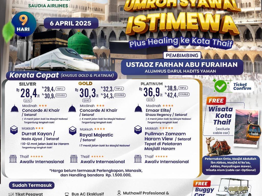 Umroh Syawal Istimewa Plus Healing ke Kota Thaif - Platinum