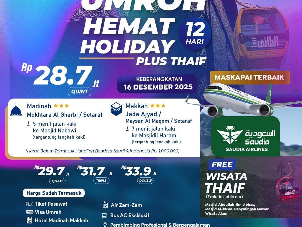 Umroh Hemat Holiday 12 Hari - 16 Desember 2025