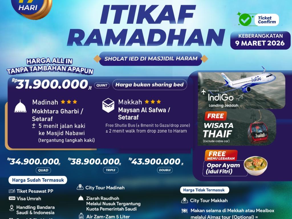 Umroh Super Hemat Itikaf Ramadhan - Maret 2026