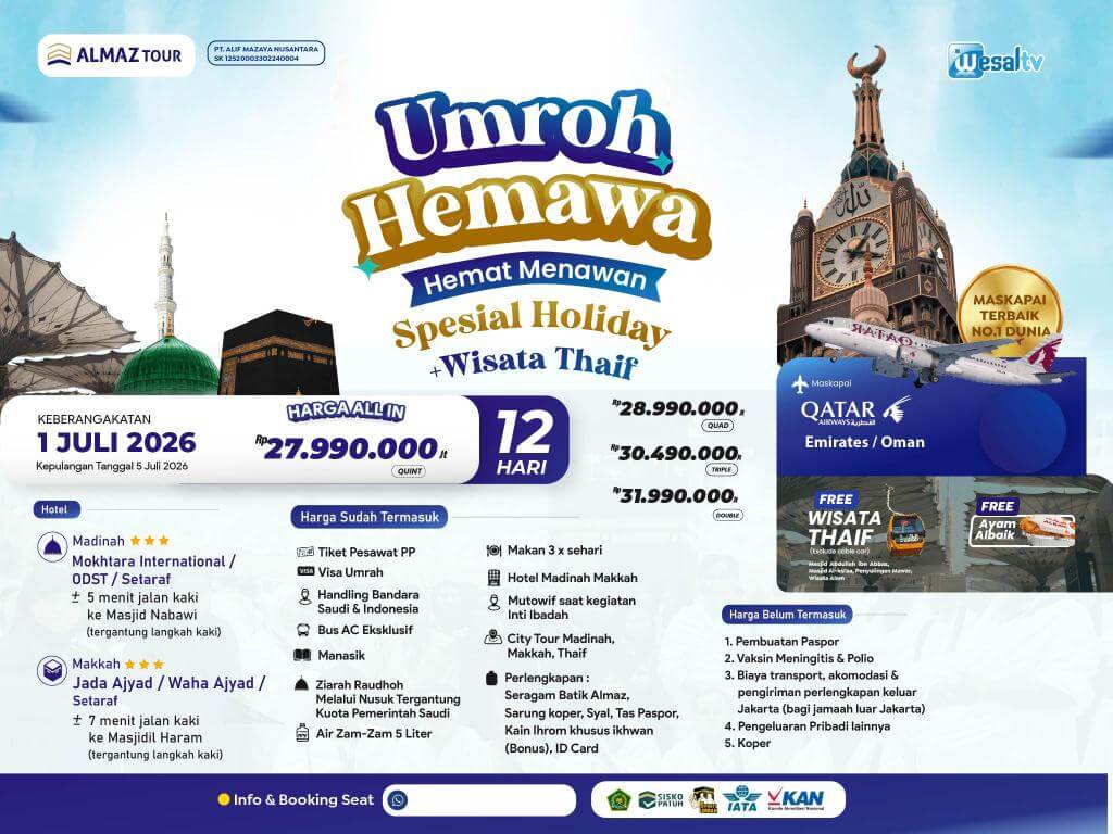 Umroh Hemawa (Hemat istimewa) Spesial Holiday - 1 Juli 2026