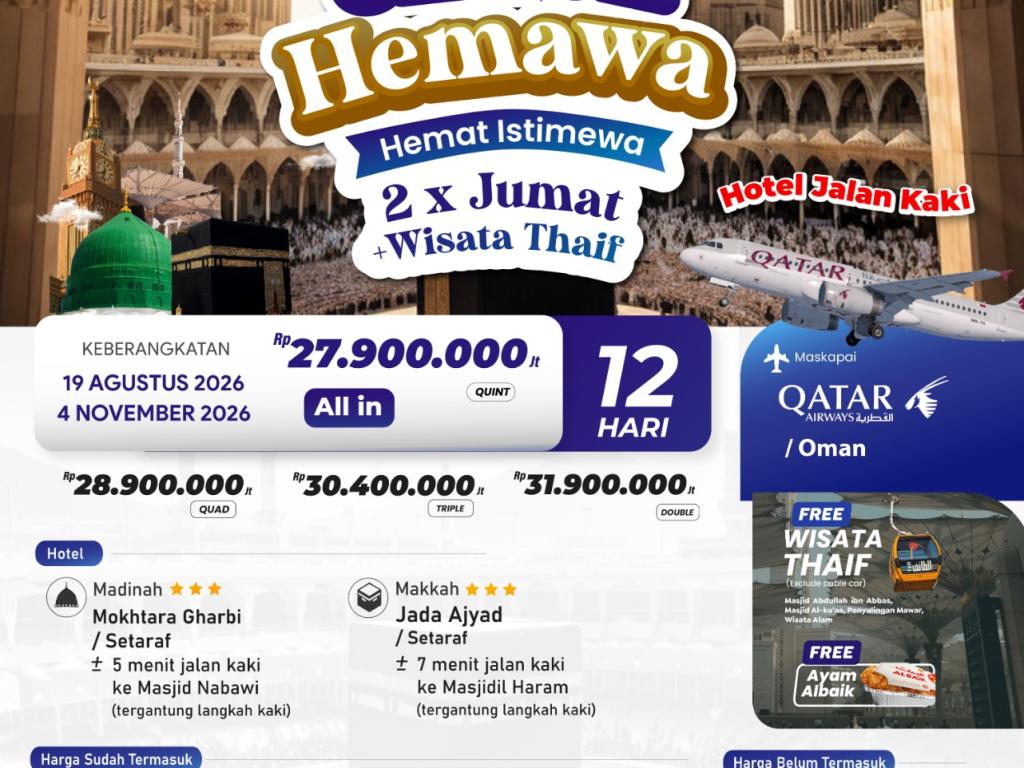 Umroh Hemawa Hemat Istimewa 2 x Jumat - 4 November 2026